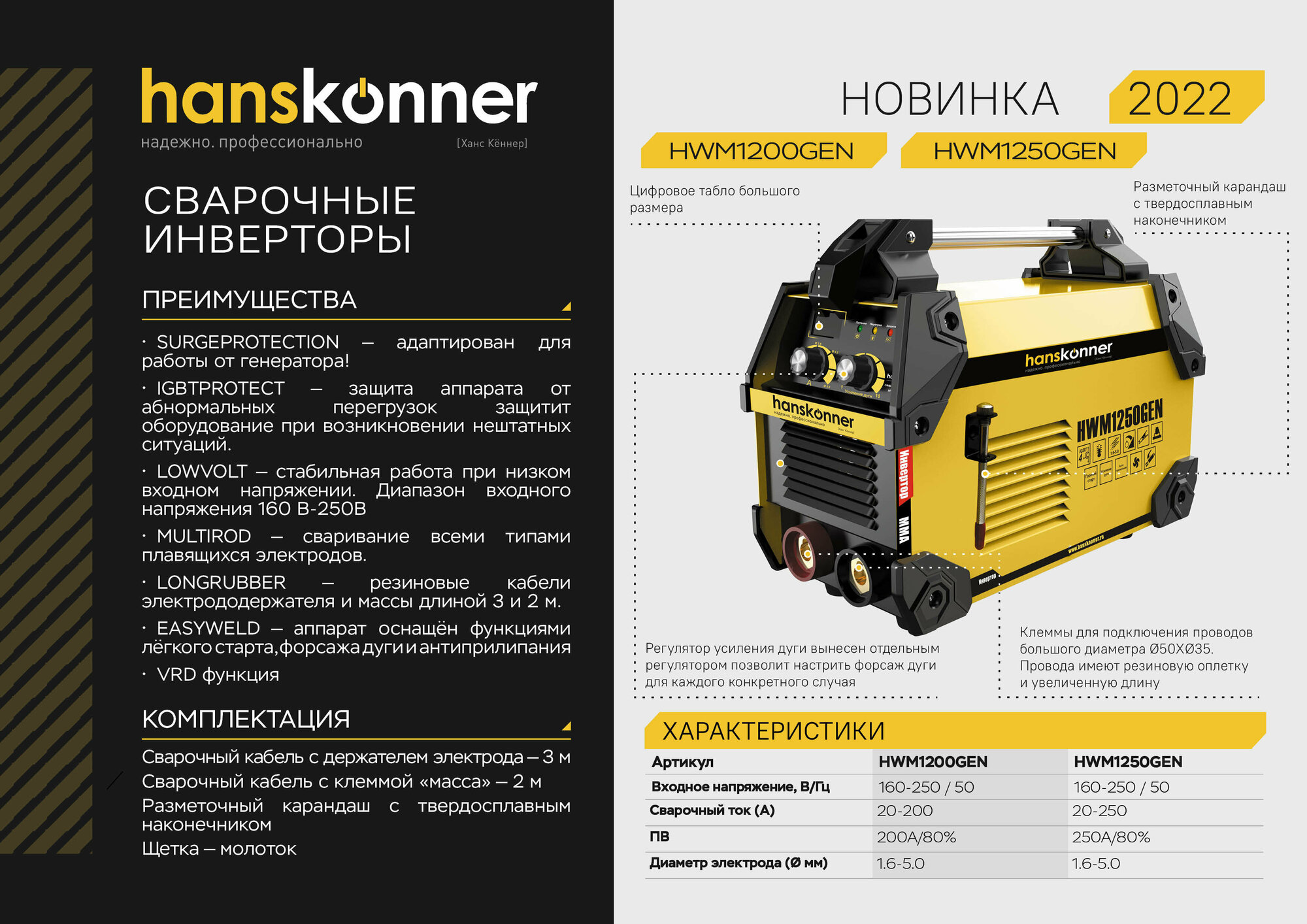 Hanskonner Hwm1200gen Сварочные инверторы ММА .