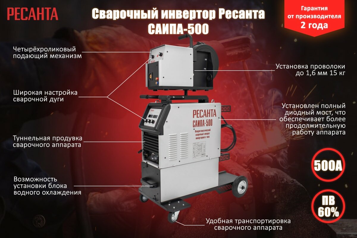 Сварочный полуавтомат САИПА-500 (MIG/MAG) Ресанта информация: