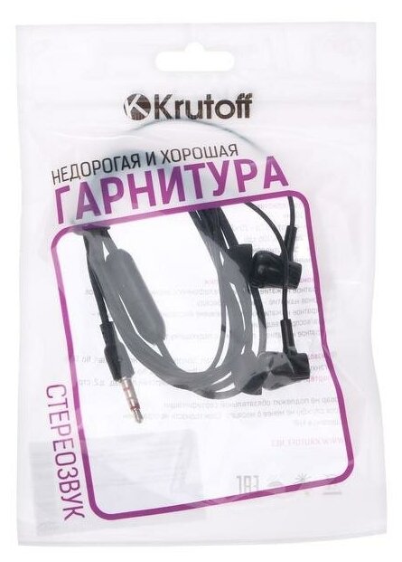 Krutoff Наушники Krutoff HF-T83, вакуумные, микрофон, 106 дБ, 16 Ом, 1 м, черные информация: