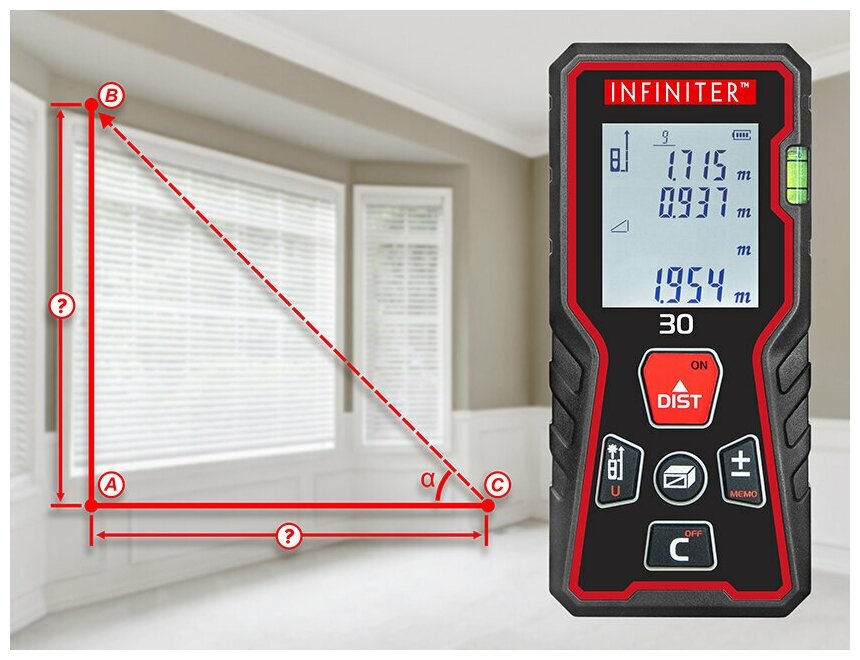 Отзывы на Дальномер лазерный INFINITER 30 (диапазон 0.05-30м, +/-1мм, площадь, объем, уровень, 0.1кг) CONDTROL 1-2-325