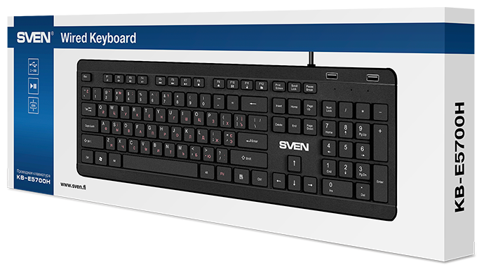 Клавиатура SVEN KB-E5700H чёрная (USB, + USB port, 104 кл) информация: