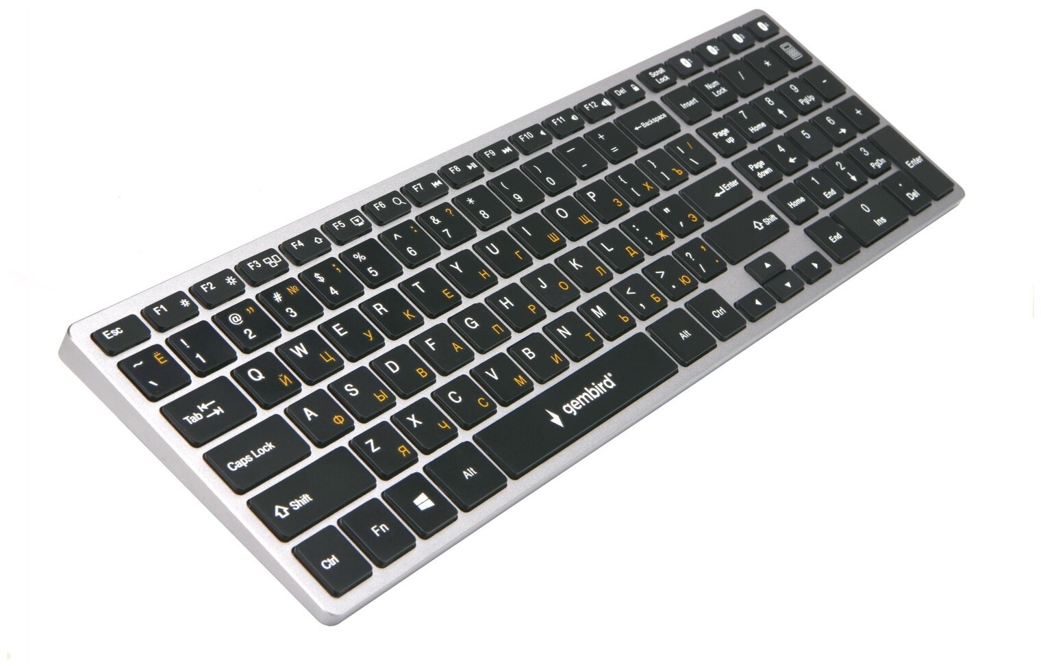 Клавиатура беспроводная Gembird KBW-2, Bluetooth, алюминий, переключение между 4 устр-ми, 106 клавиш, мультимедиа, ножничный механизм, бесшумная 3 080 ₽