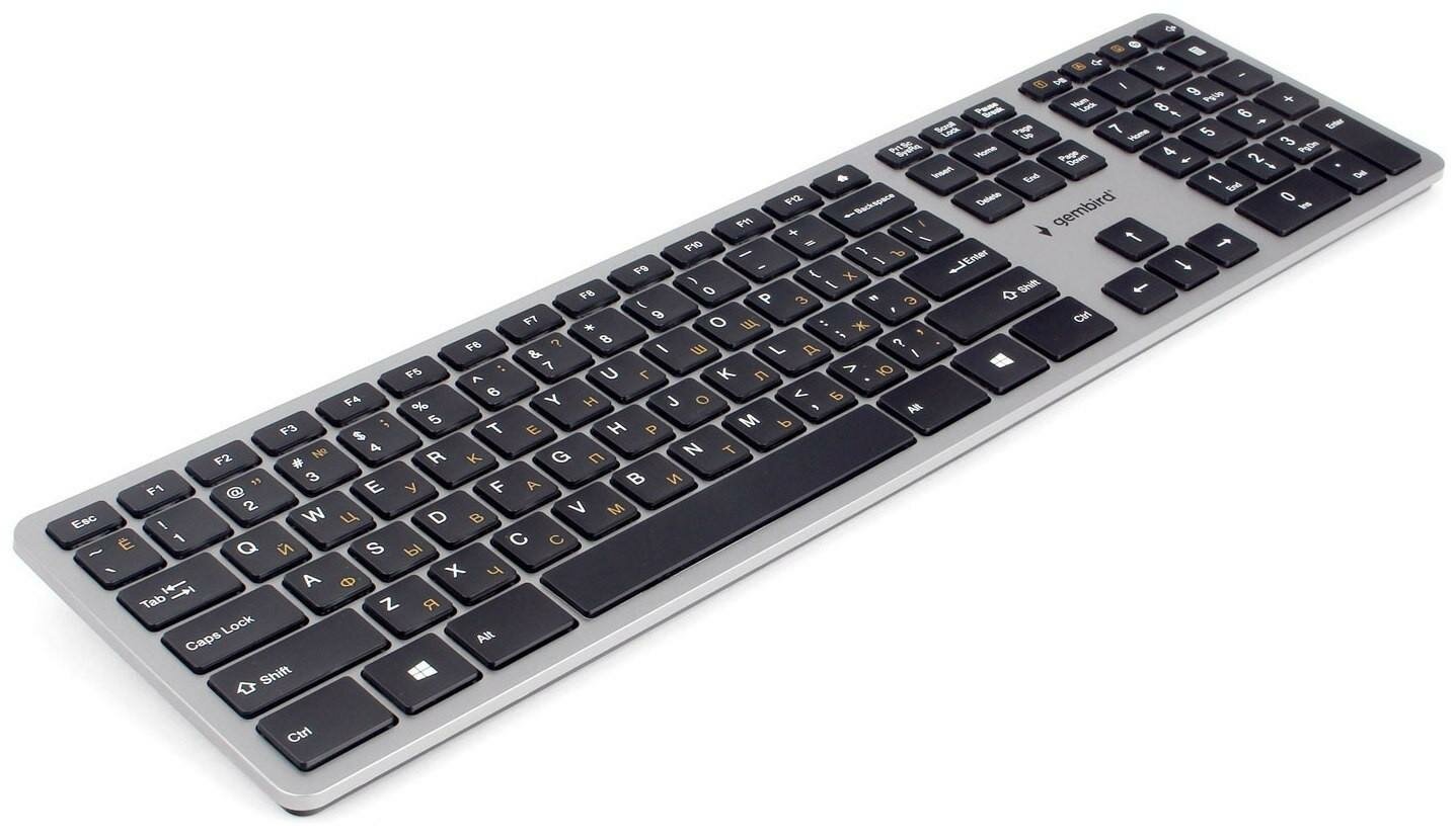 Беспроводная клавиатура Gembird KBW-3 109 клавиш, ножничный механизм, бесшумная - металлик