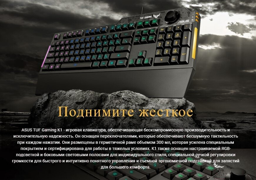 Клавиатура ASUS TUF Gaming K1 90MP01X0-BKRA00 игровая, мембранная, RGB подсветка, USB, регулятор громкости