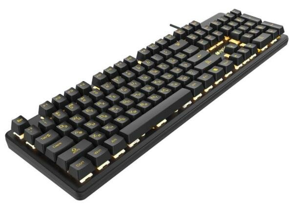 HIPER GK-4 CRUSIDER Игровая клавиатура чёрная (Slim, USB, Xianghu Blue switches, Янтарная подсветка, Влагозащита)