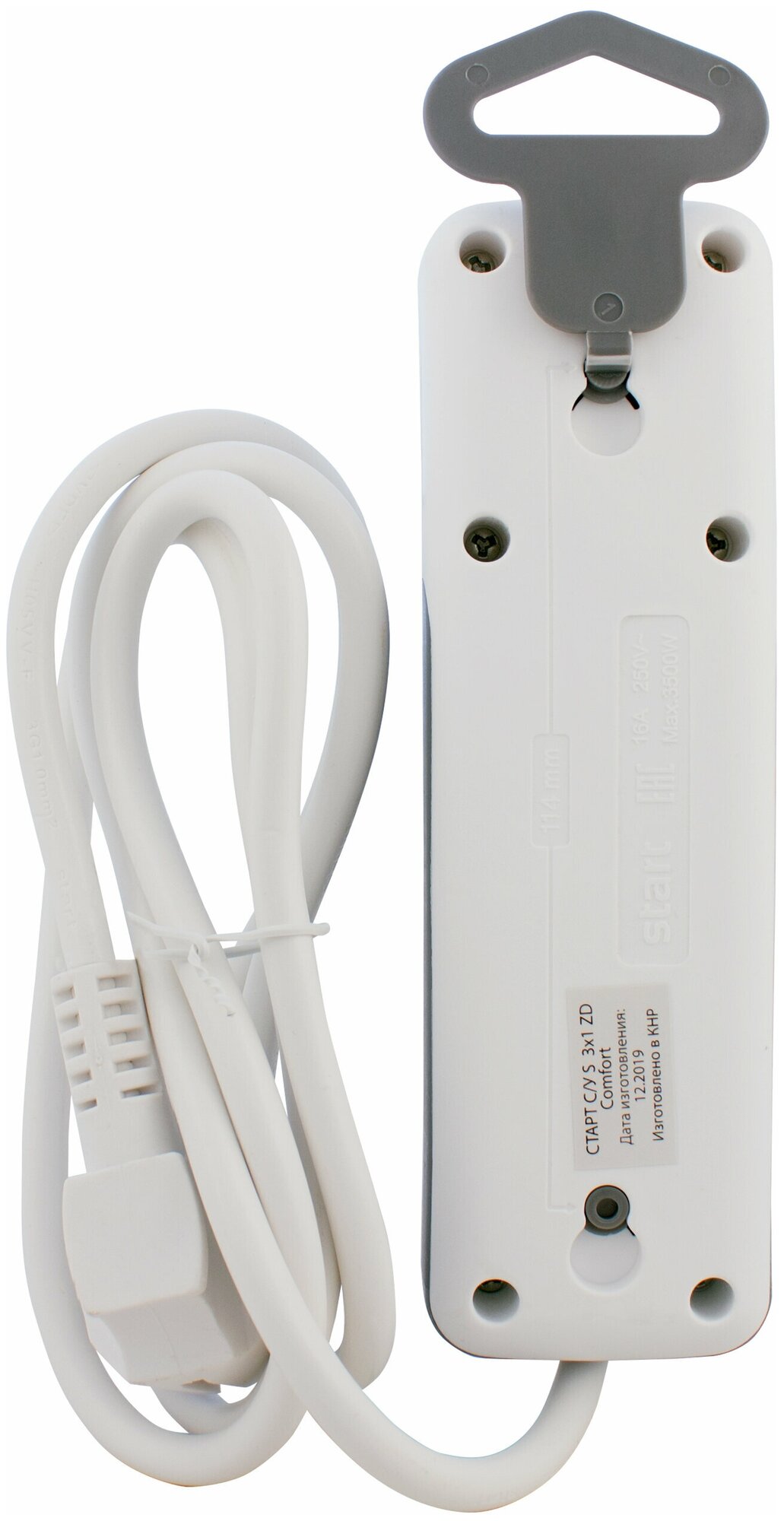 Удлинитель старт S 3x1-ZD Сomfort (3 розетки 1,5 м) 16А / 3500 Вт с заземлением, белый