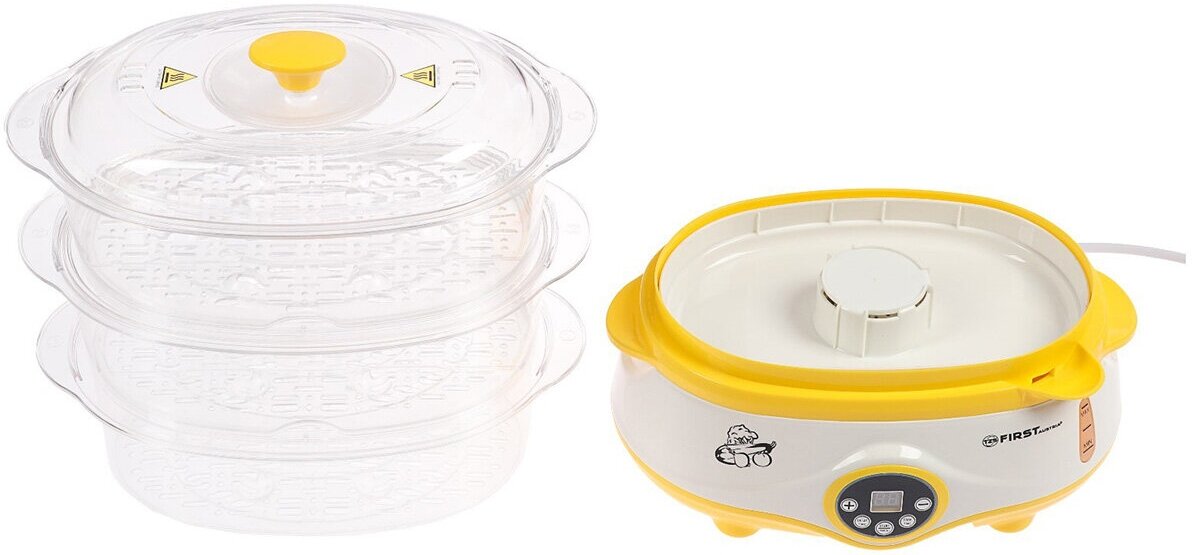 FIRST AUSTRIA Пароварка электрическая First, желтый, 1000 Вт, 11 л, 3 чаши, поддон, таймер, автовыключение