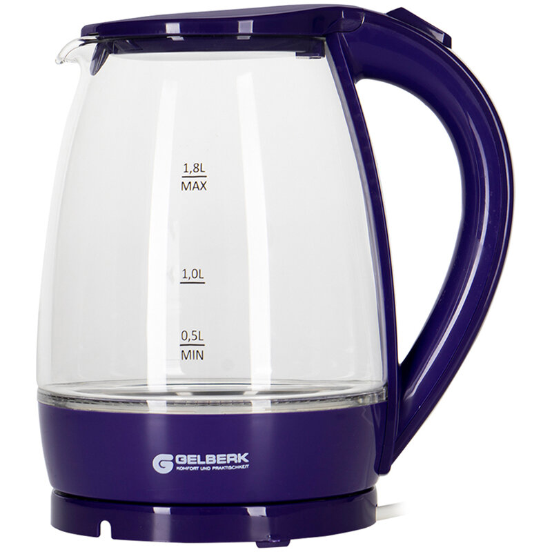 10 цен на Чайник электрический Gelberk GL-471, 1.8л, 2000Вт, стекло/пластик, фиолетовый