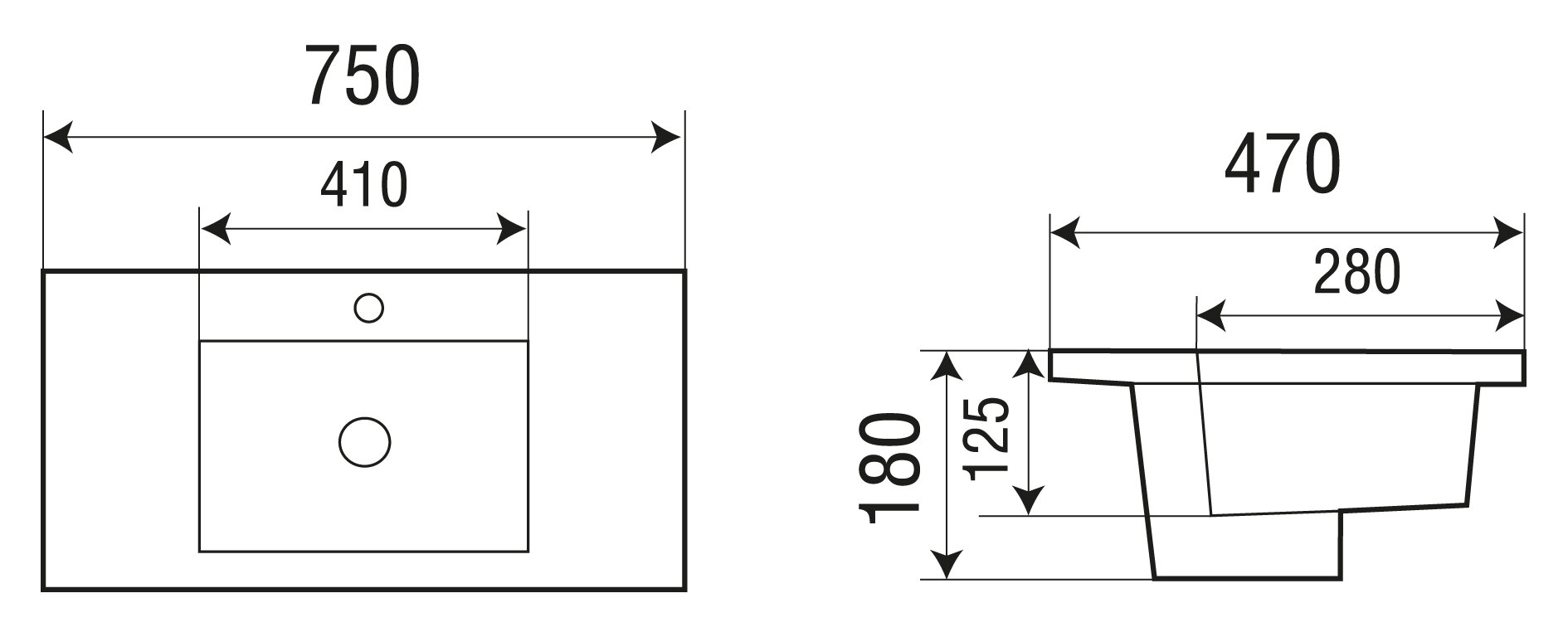 | Расположение отверстия под смеситель | в центре |