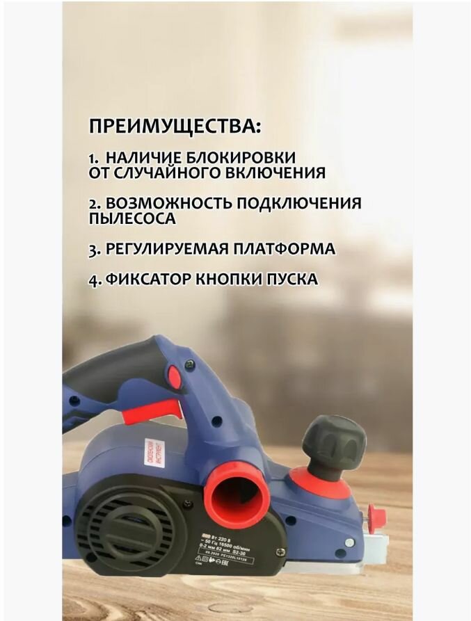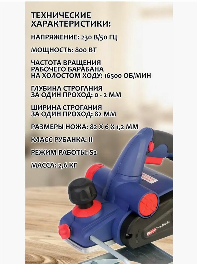 Рубанок электрический сетевой 800 Вт 16000 об/мин глубина 2 мм 82 мм вихрь 671127 (1)