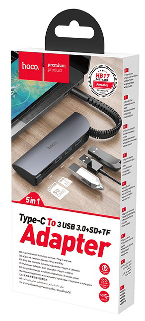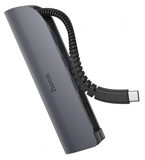 Отзывы на Переходник хаб Hoco HB17 Easy connect Type-C adapter (Type-C to USB3.0*3+ SD+TF), серый
