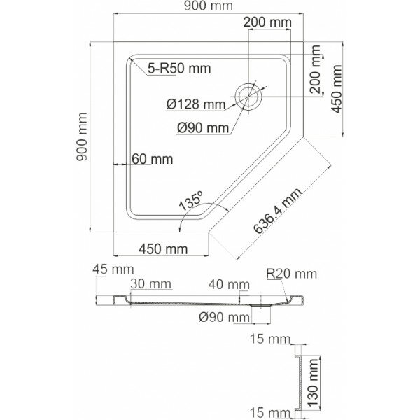 Поддон для душа Wasserkraft Isen 26T (26T11) (90x90) (пятиугольный) 28 420 ₽