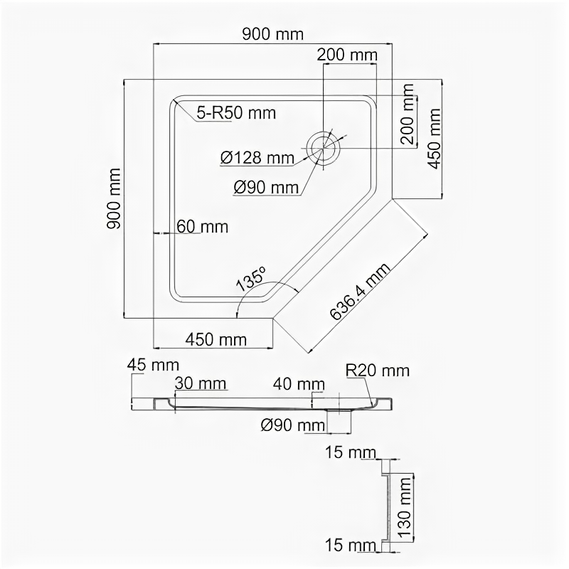Душевой поддон WasserKRAFT Isen 26T11, пентагональный 90х90х17,5 см, акриловый 28 420 ₽