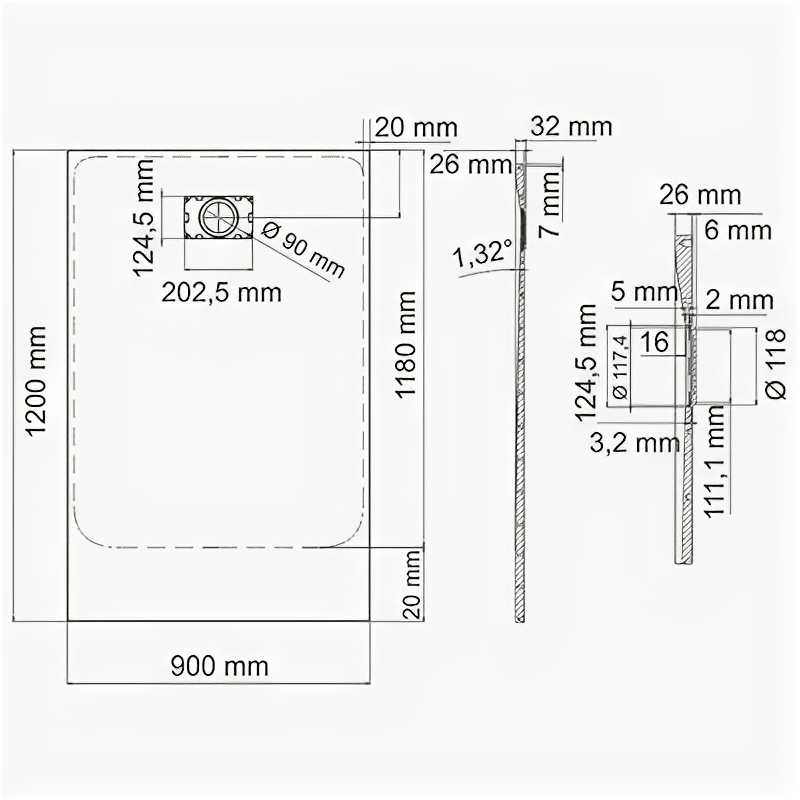 Душевой поддон из стеклопластика WasserKRAFT Main 90x120 41T07 с сифоном и трапом 33 110 ₽