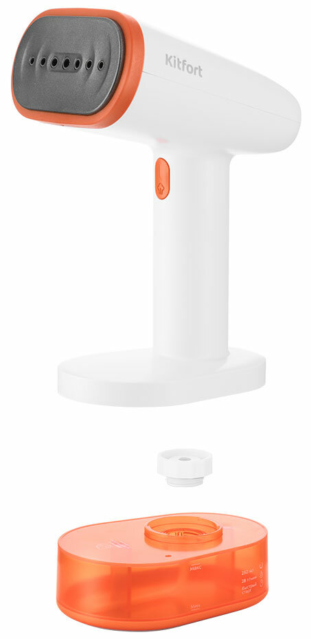 Отпариватель для одежды Kitfort KT-984-4 ручной, резервуар 250 мл, подача пара 28 г/мин, мощность 1600 Вт, оранжевый