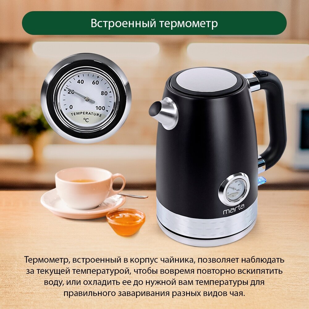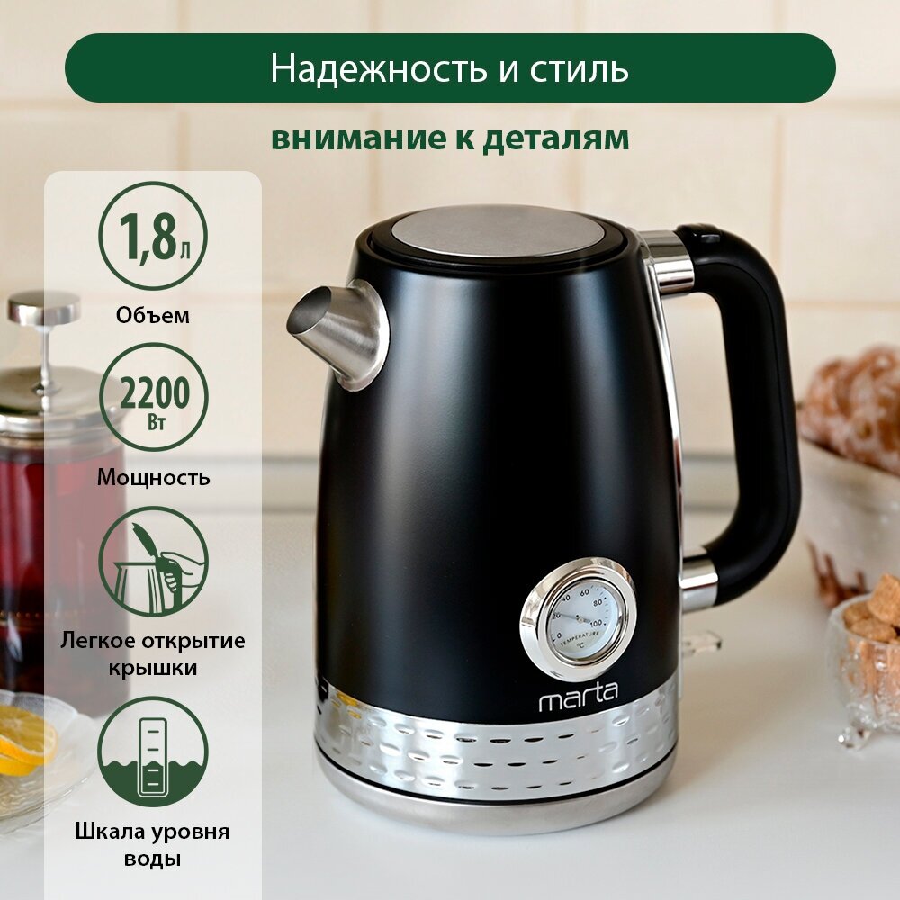 Электрический чайник MARTA MT-KT4652A черный металлический 1,8 л