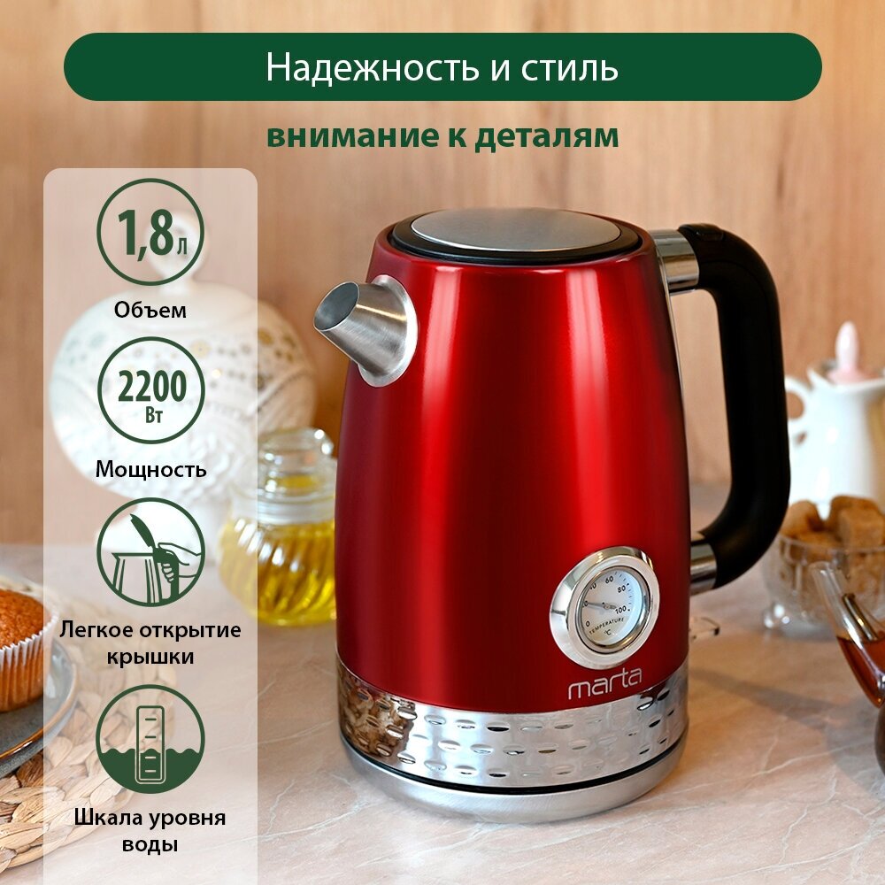 MARTA MT-4571 красный рубин чайник металлический информация: