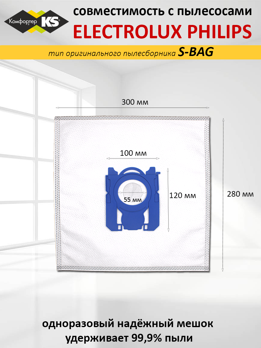 10 цен на Пылесборники синтетические Komforter для пылесосов ELECTROLUX PHILIPS Тип S-bag