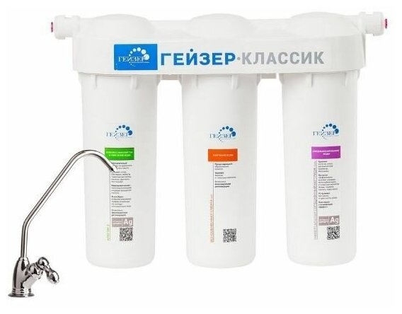Стационарный Гейзер Классик, фильтр под мойку с краником для комплексной очистки воды информация: