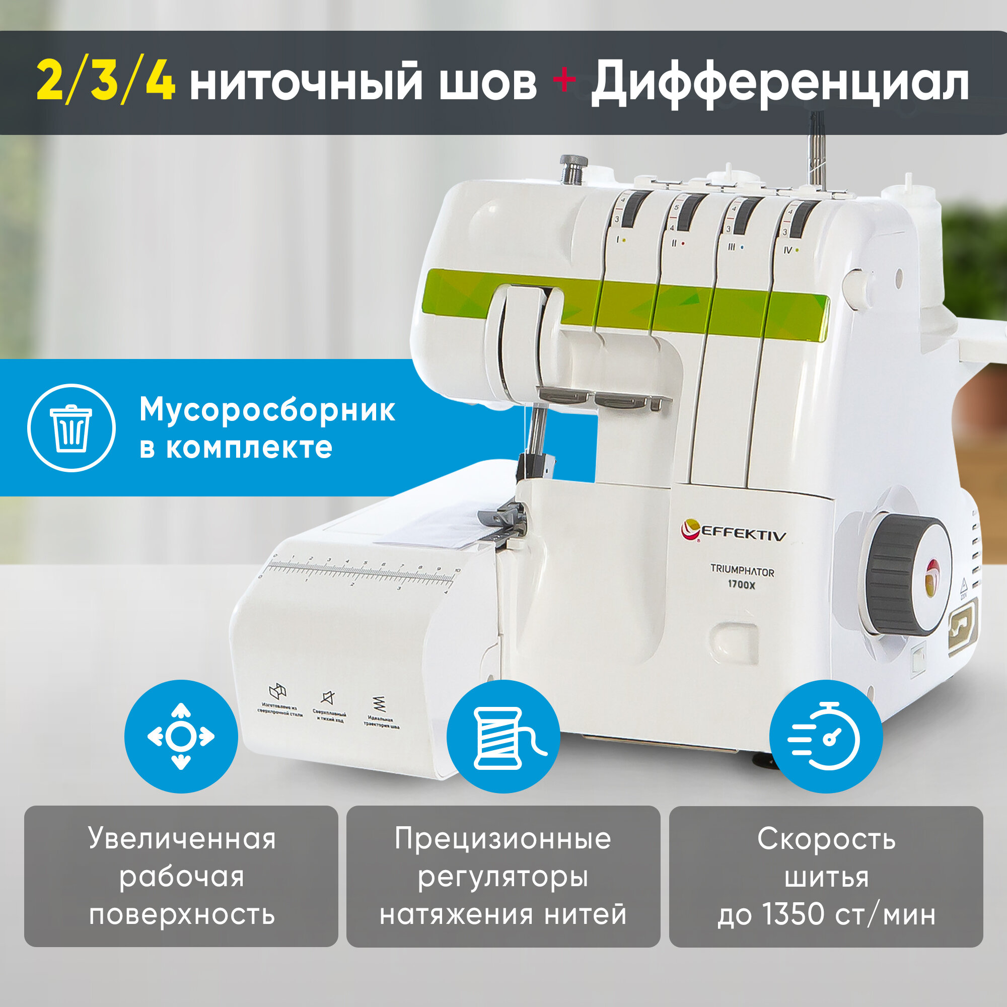 10 цен на Оверлок EFFEKTIV Triumphator 1700X (зелёный) 3-4 ниточный с функцией автоматической заправки нитей