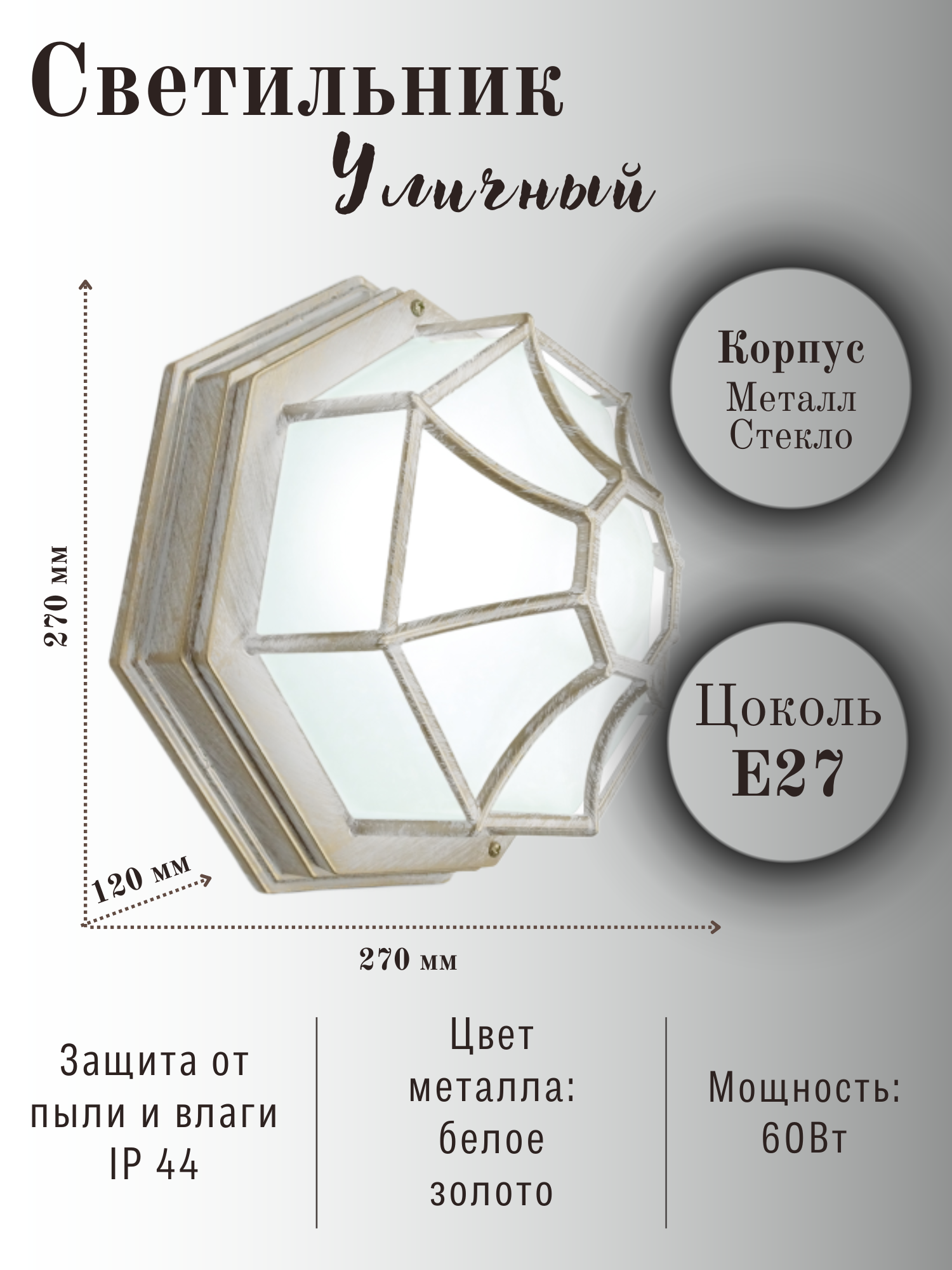 Светильник садово-парковый 60W 230V 270*270*120 белое золото PL661 информация: