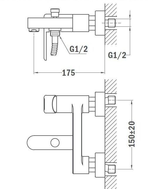 Смеситель на раковину настенный Эверест B46-350 с круглым поворотным изливом, кран-буксы 1/2", хром