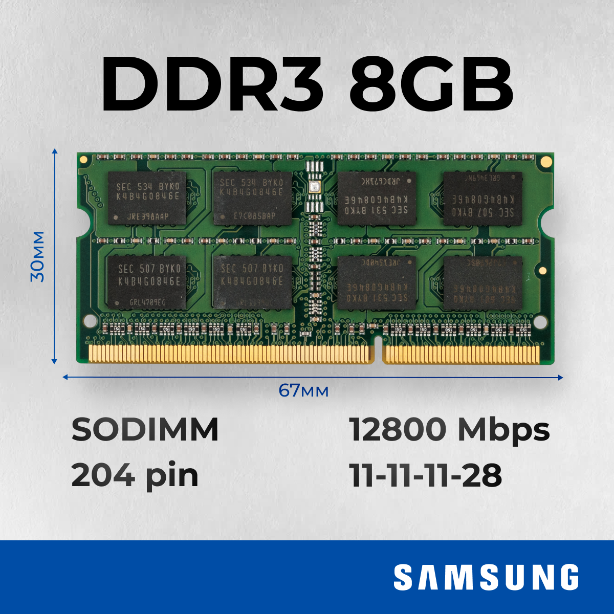 Оперативная память Samsung 8 ГБ PC3 (DDR3) 1600 МГц SODIMM 1,5v