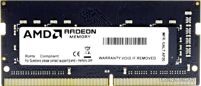 8GB AMD Radeon™ DDR4 3200 SO DIMM R9 Gamers Series Black Gaming Memory R948G3206S2S-UO Non-ECC, CL16, 1.2V, Bulk (182279) 1 928 ₽