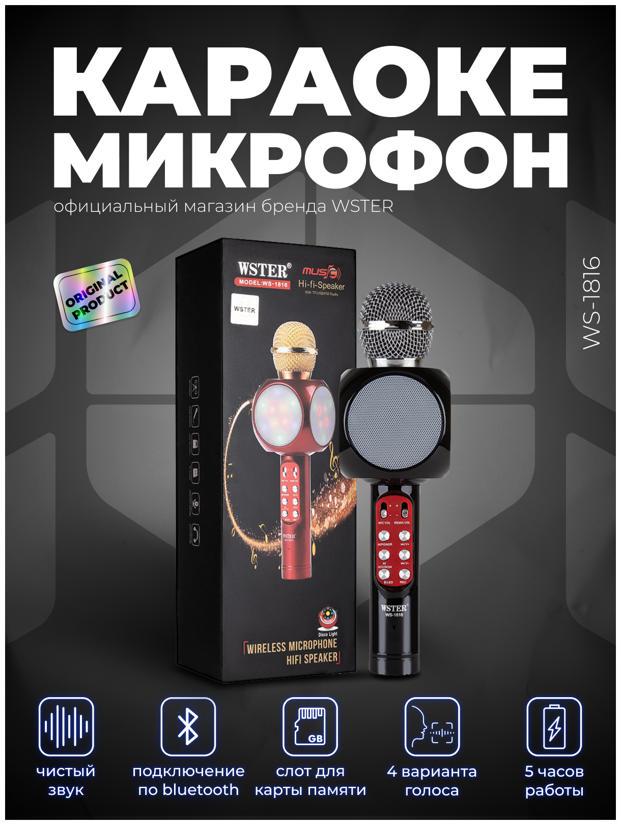 Беспроводной караоке микрофон со встроенной колонкой Wster WS-1816 (Черный) информация: