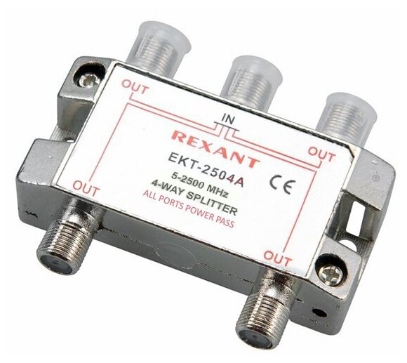 Делитель ТВ на 4 выхода F разъём 5-1000 МГц REXANT информация: