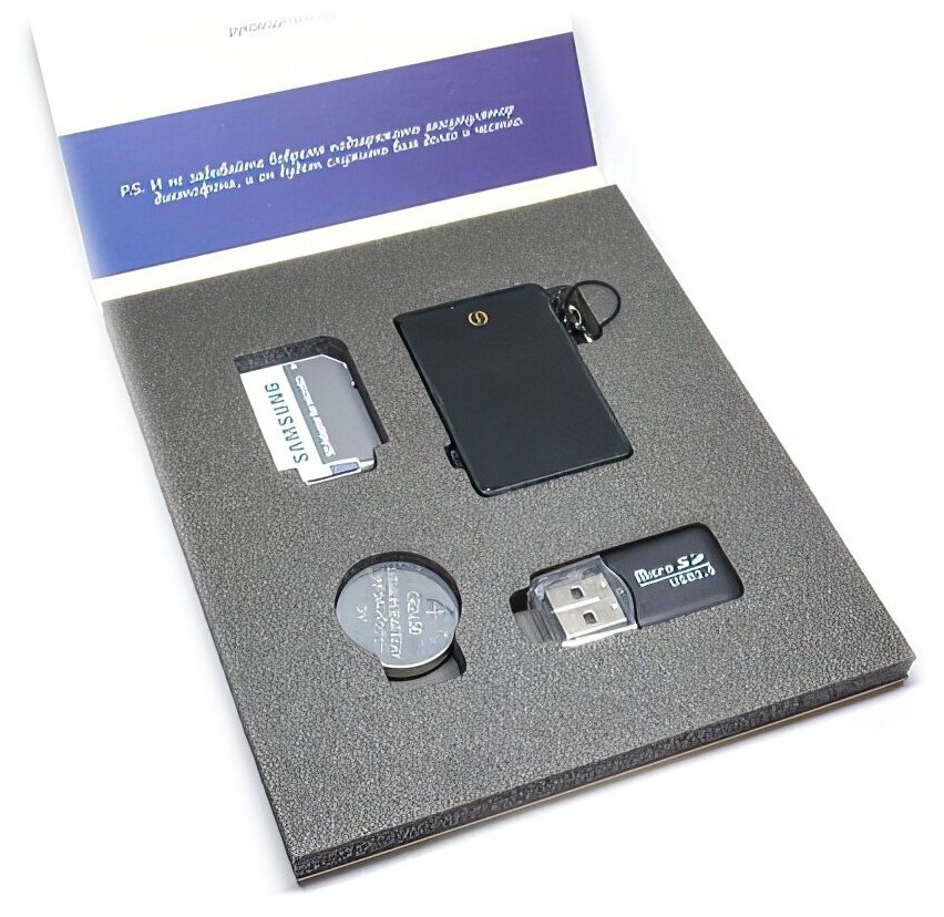 Мини диктофон визитка Edic-мини A108 (microSD) (Q20735EDI) + подарки (microSD и Power Bank 10000 mAh) - запись до 20 метров, автономная работа до 600