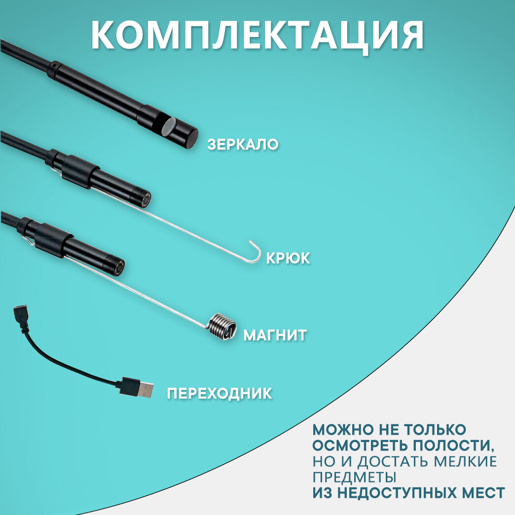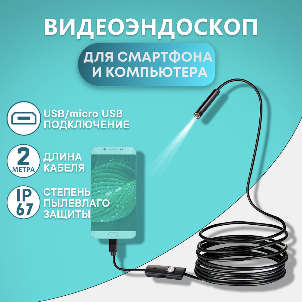 Камера-эндоскоп для смартфона водонепроницаемый, 2 метра