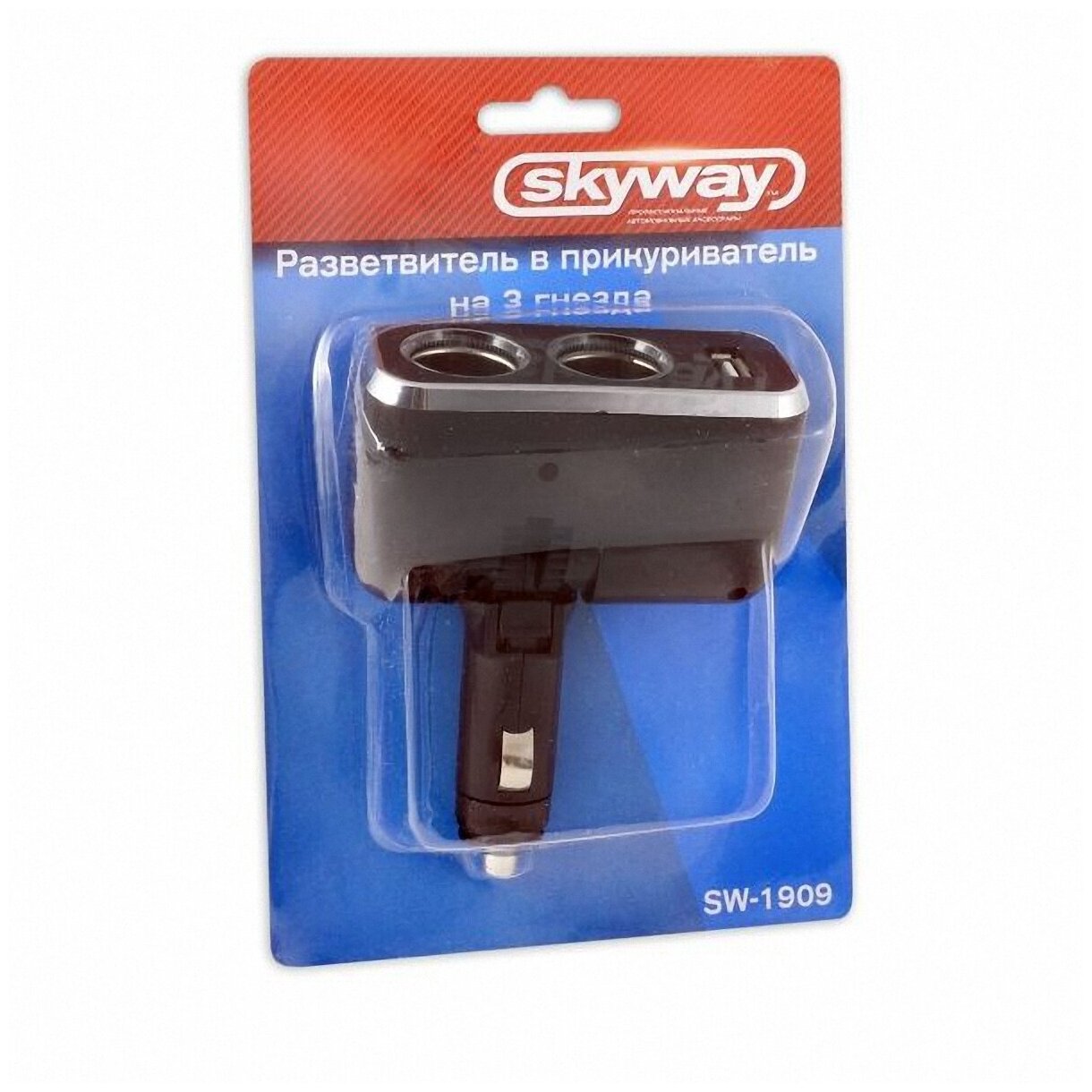 skyway Разветвитель автомобильный прикуривателя, 2 гнезда + USB, предохранитель, 10А, USB 800mA, SKYWAY