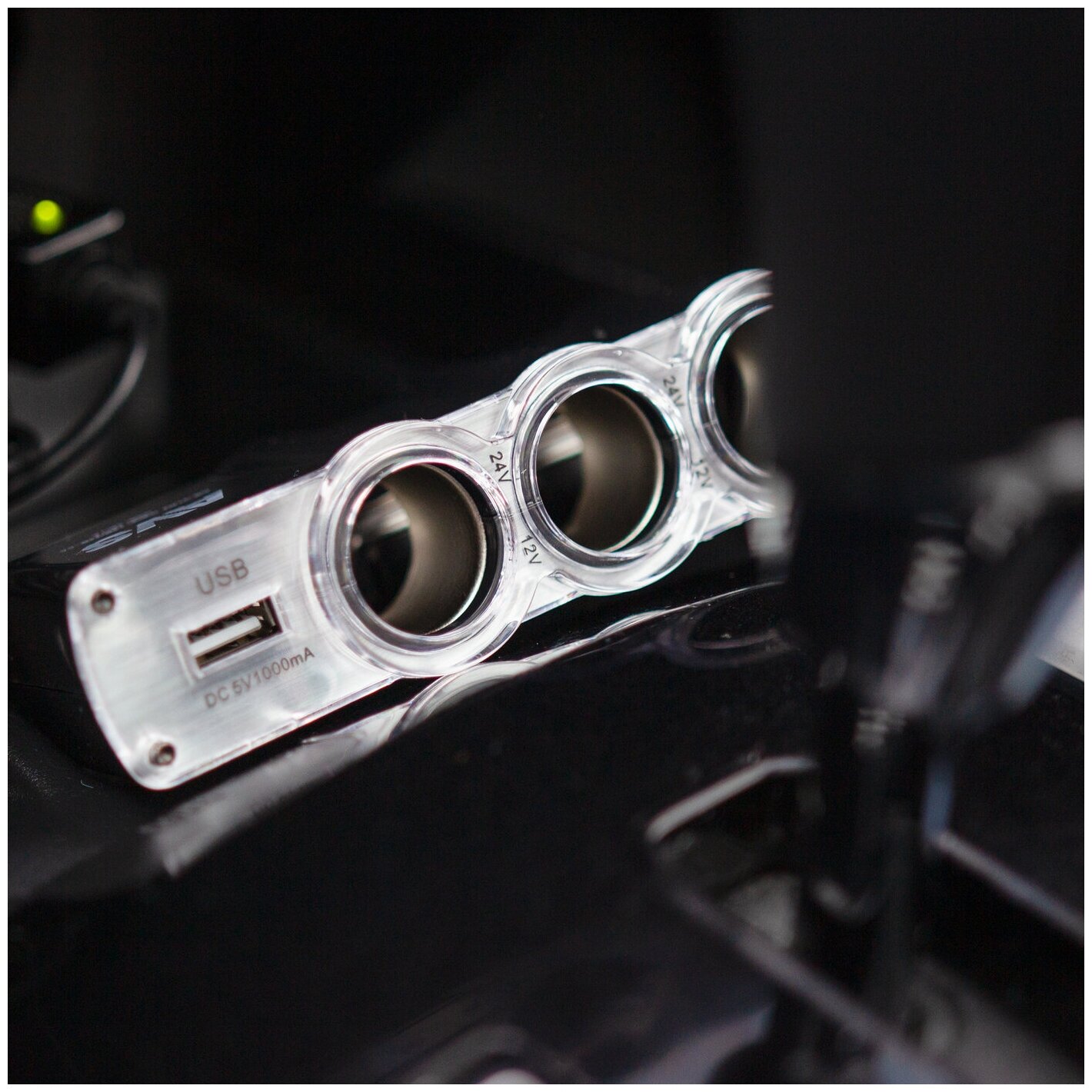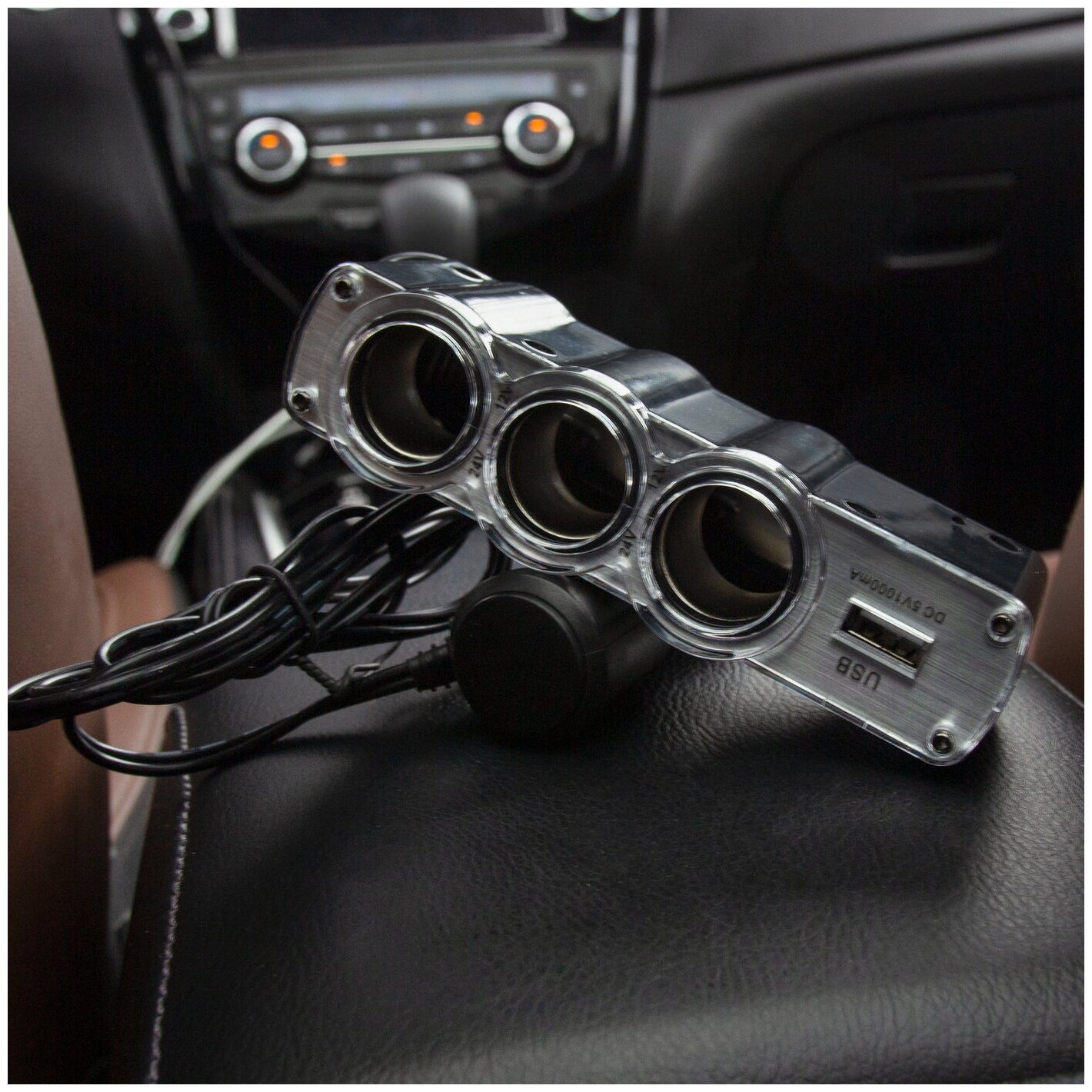 Автомобильное зарядное устройство разветвитель прикуривателя 24 / 12v на четыре гнезда + USB (1000 MA) MyPads