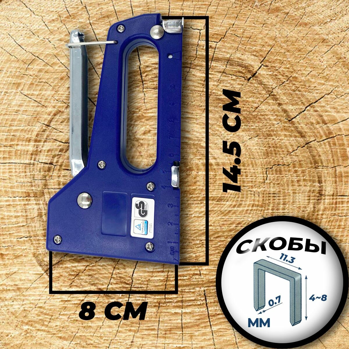Степлер строительный NAGAN тип 53, скобы 4-14 мм металлический, регулировка удара, двухкомпонентная рукоятка