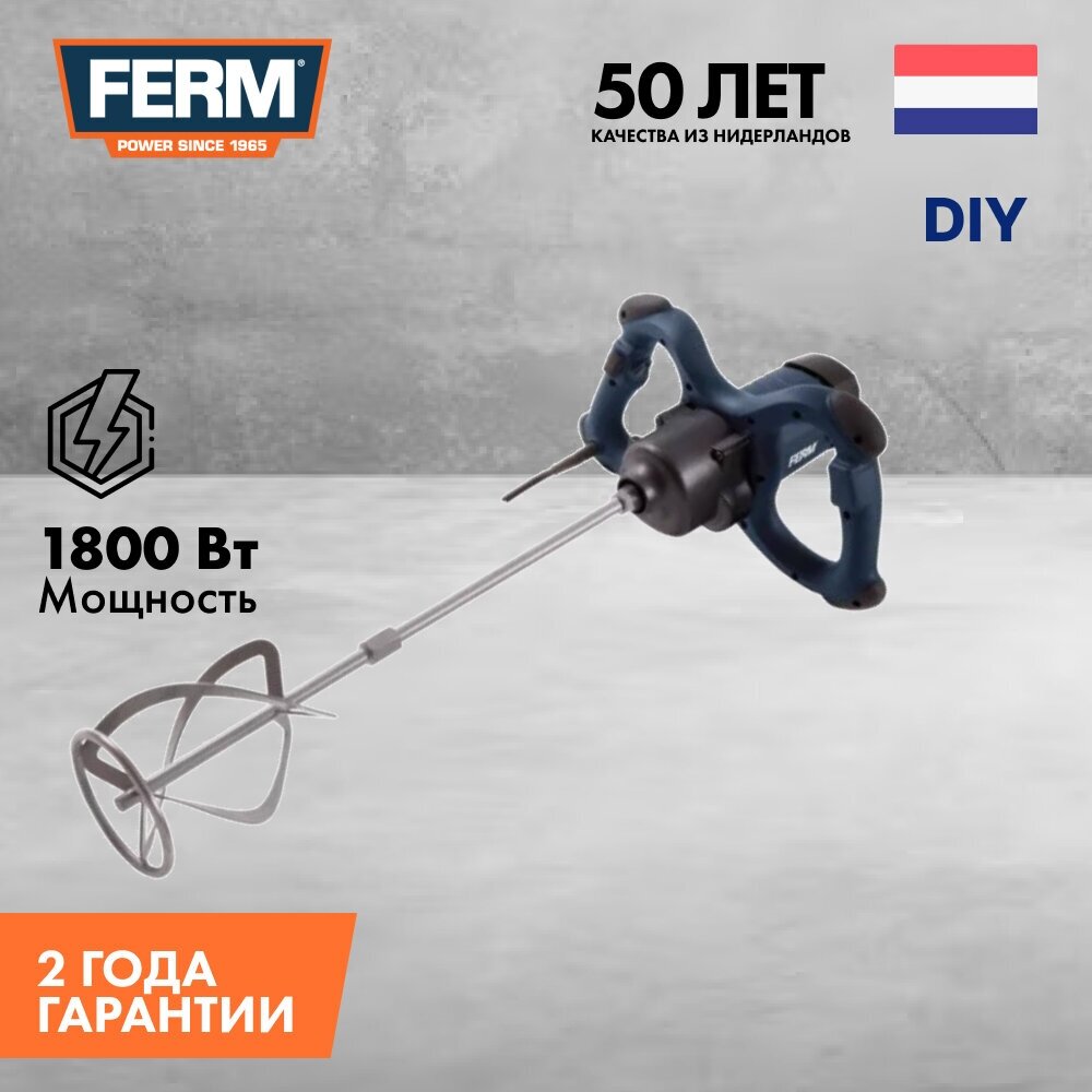 Миксер строительный FERM PMM1010, 140 мм, 1800 Вт, 180-700 об.мин., коробка информация: