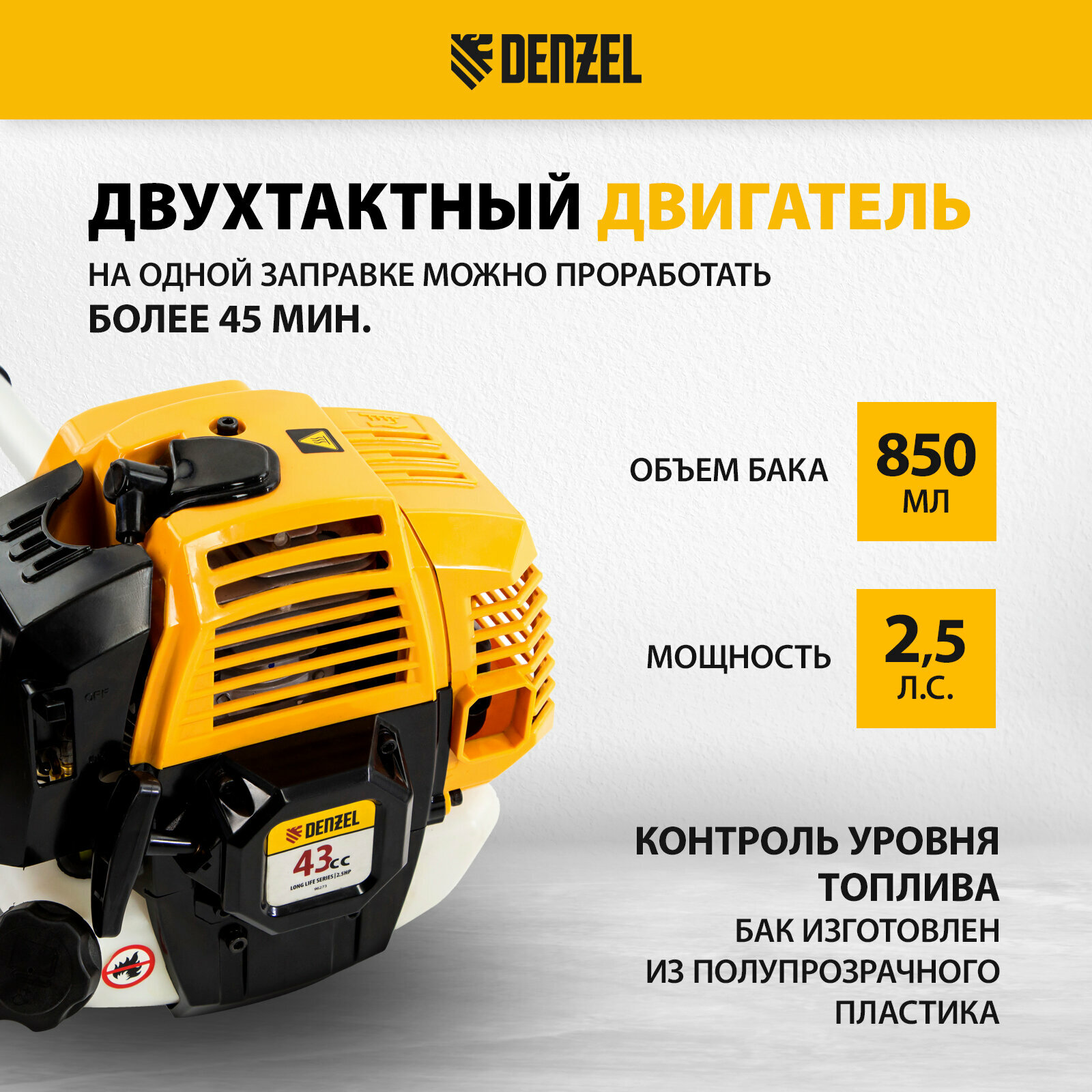 Триммер бензиновый DR-43, 43 см3, неразъемная штанга, Denzel, арт. 96273 информация: