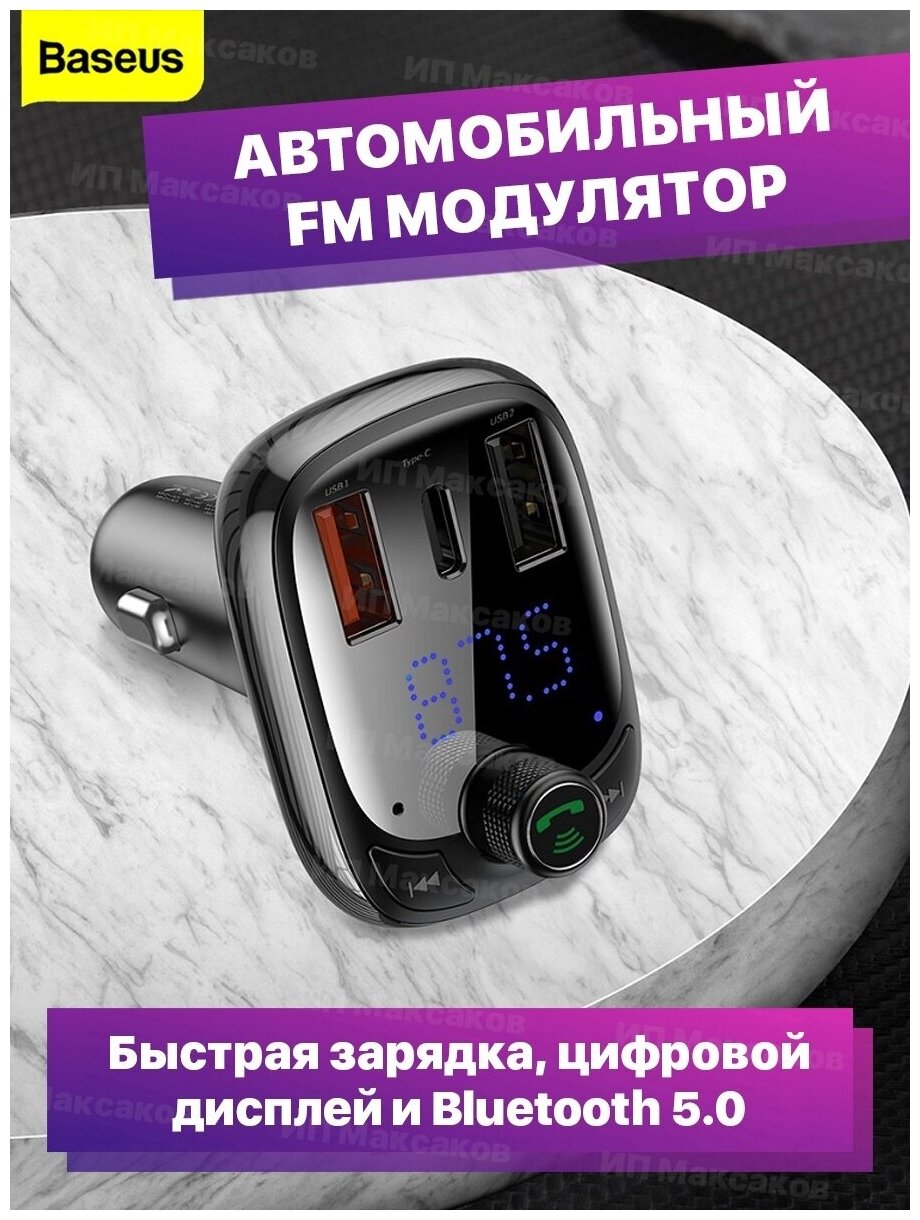 FM-трансмиттер Baseus с функцией быстрой зарядки и USB-портом, Bluetooth 5.0