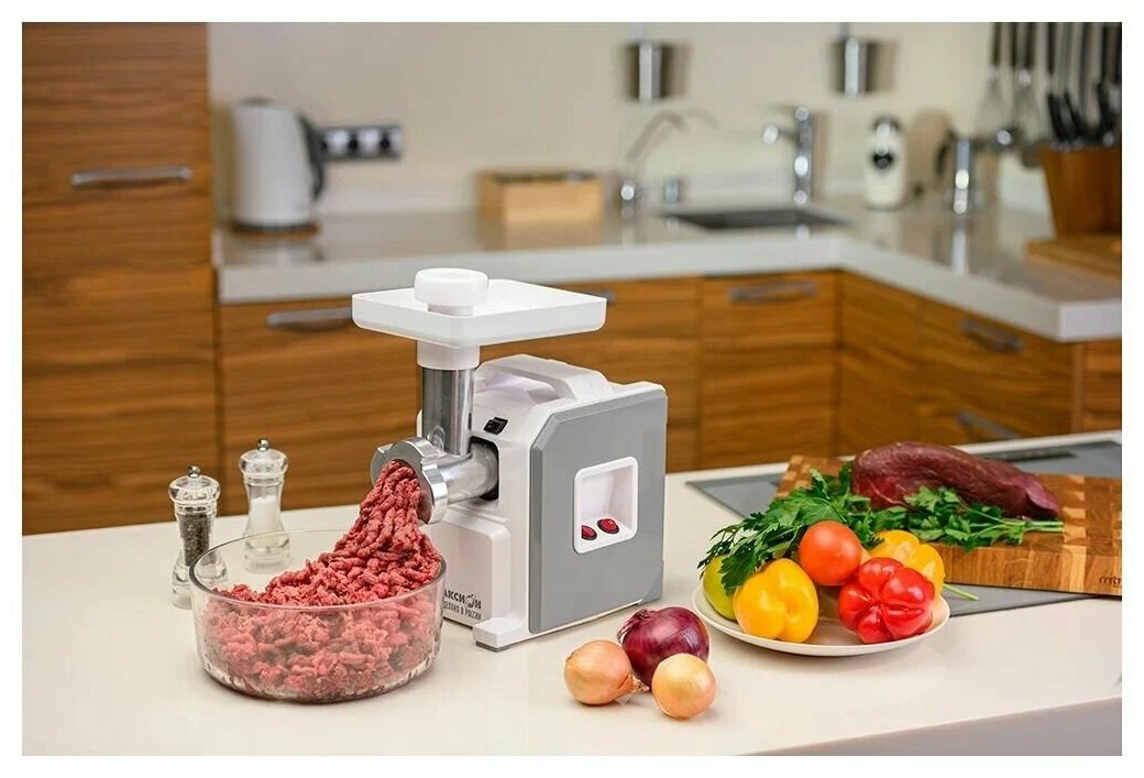 Мясорубка Аксион М321, 1500 Вт, реверс, защита двигателя, насадки для кеббе и колбас