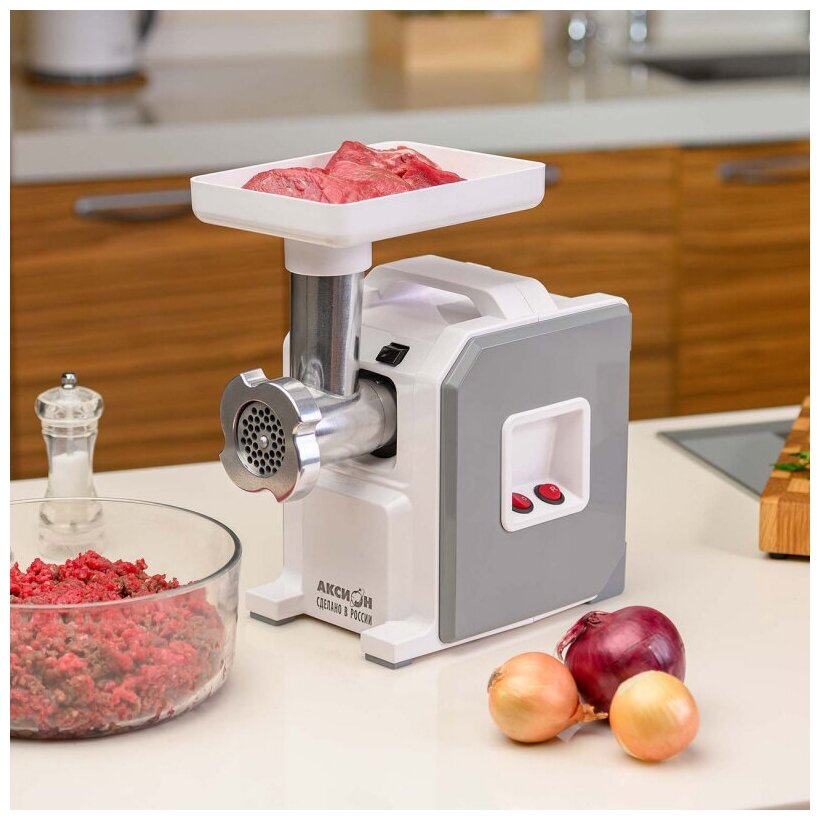 Мясорубка Аксион М 43.01 бело-серая, реверс, 1,9кВт, 2кг/мин,насад д/колбас, съемный экран, 2 диска