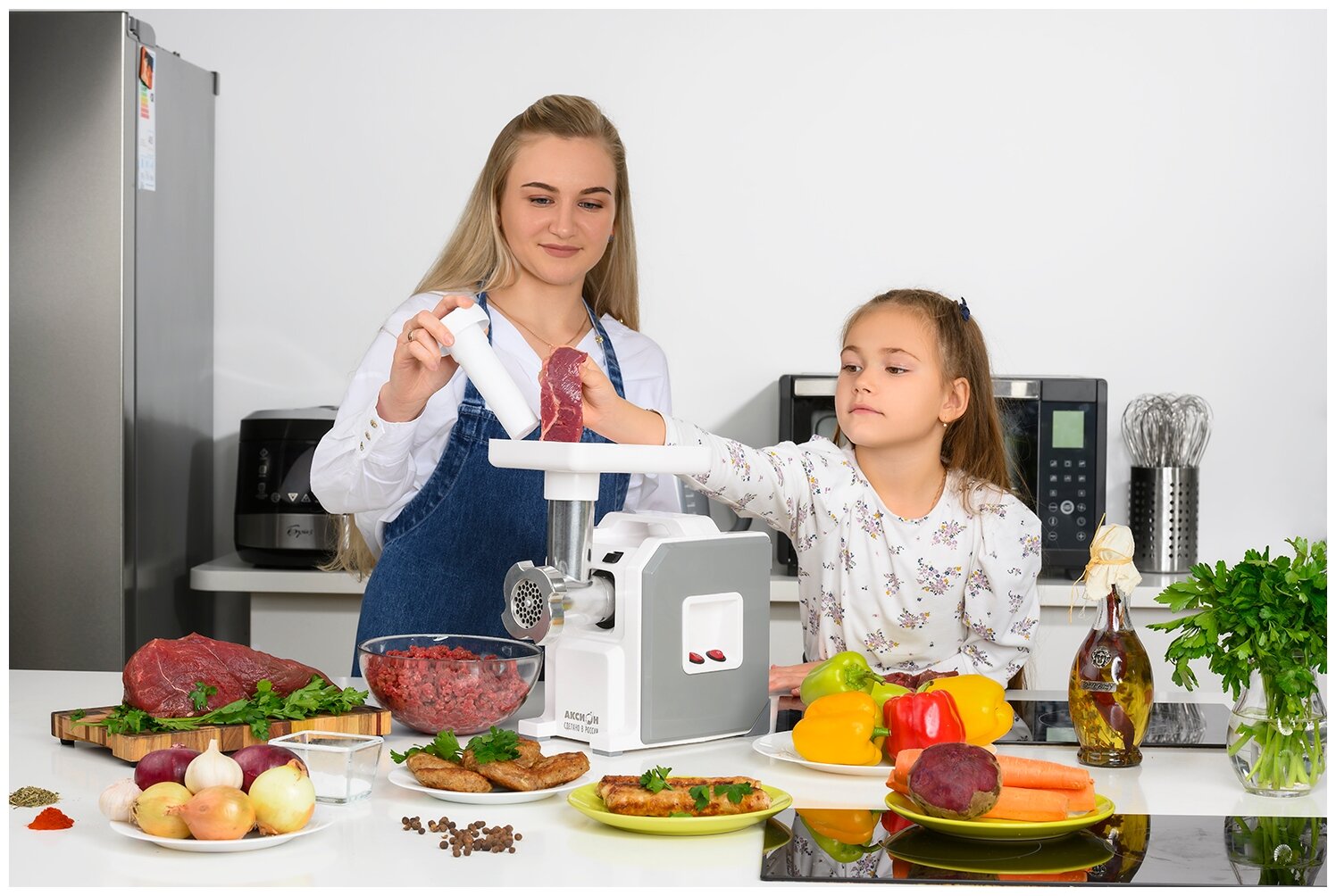 Мясорубка Аксион М321, 1500 Вт, реверс, защита двигателя, насадки для кеббе и колбас