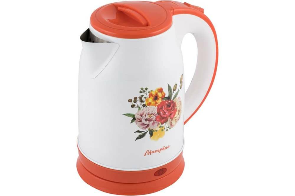 Чайник электрический матрёна MA-120, металл, 1.8 л, 1500 Вт, бело-оранжевый с рисунком
