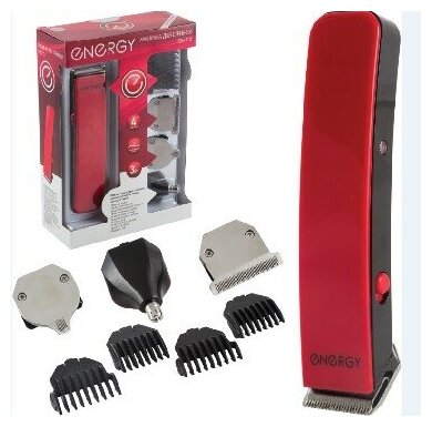 10 цен на Машинка для стрижки ENERGY EN-713 3 Вт, 4 насадки, красный/черный