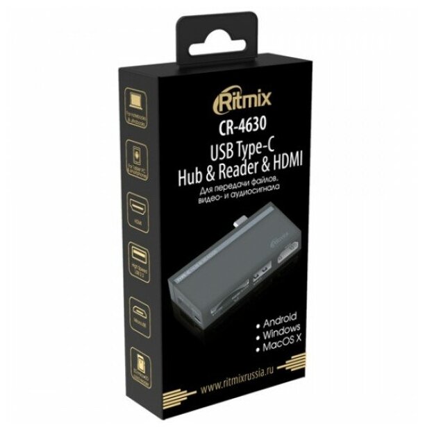 Устройство чтения RITMIX CR-4630 (USB type C → USB2.0, MicroUSB, SD, MicroSDx2, HDMI)