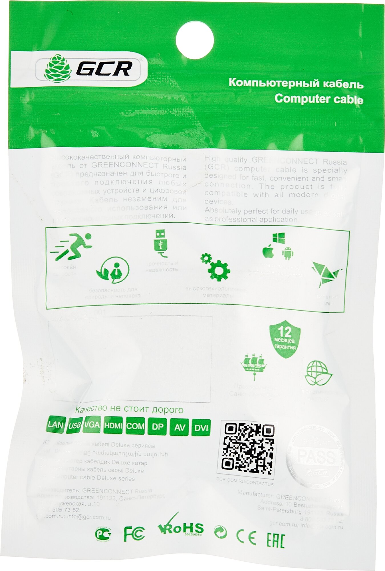 GCR Кабель 0.3m USB 2.0, AM угловой левый/microB 5pin угловой левый, черный, 28/28 AWG