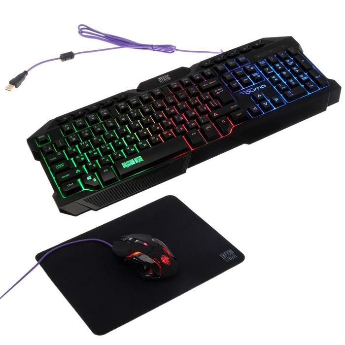 Комплект клавиатура + мышь + коврик Qumo Solaris Black USB