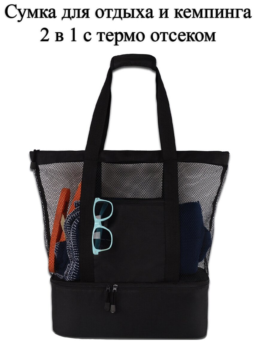 Сумка для отдыха/ сумка холодильник/ сумка с термо-отсеком/ сумка для кемпинга (черный) информация: