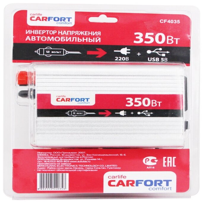Инвертор напряжения CARFORT DC12v- AC220v. 350w (1/40) информация: