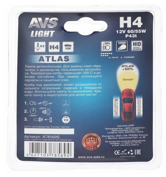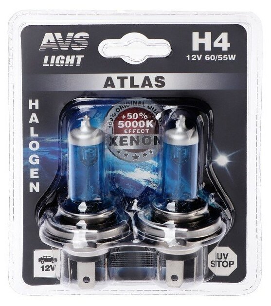 Отзывы на Галогенная лампа AVS ATLAS, H4, 12 В, 60/55 Вт, набор 2 шт 2143525