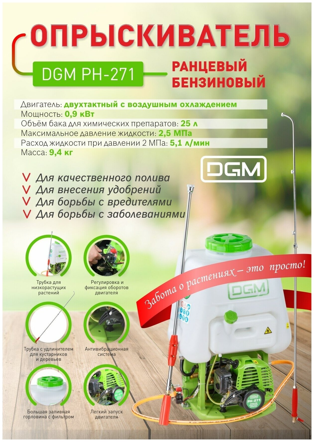 Опрыскиватель ранцевый бензиновый DGM PH-271 . информация: